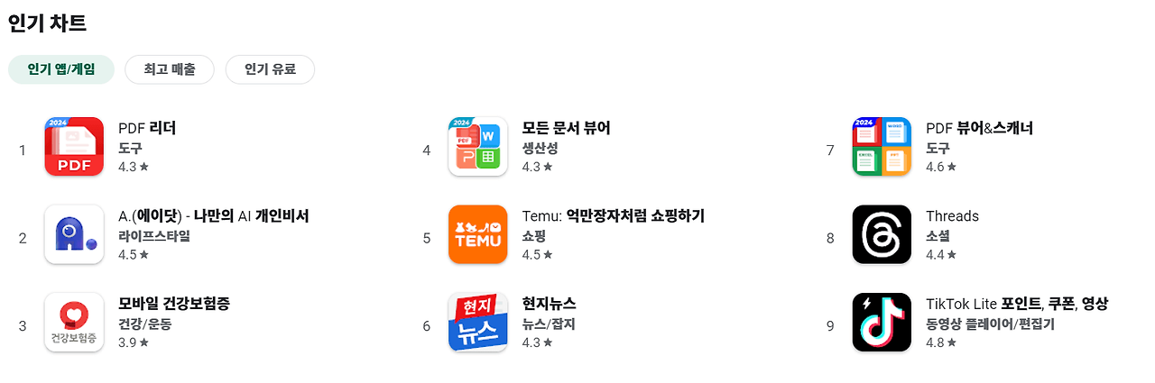 플레이스토어 다양한 앱과 콘텐츠