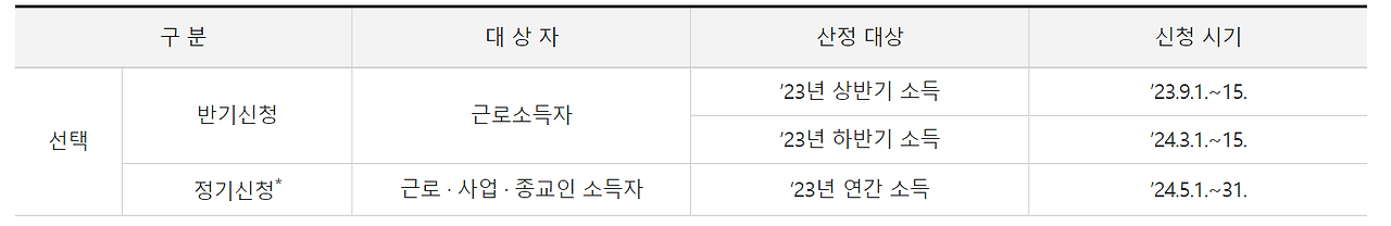 ✅ 반기신청기간 (근로소득자 해당)