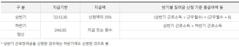 | 상반기 반기신청분 | 연말까지 지급 |