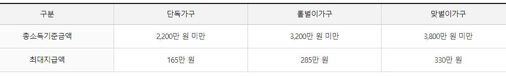 | 3. 소득의 요건 | 최대지급액 | |