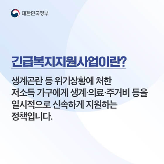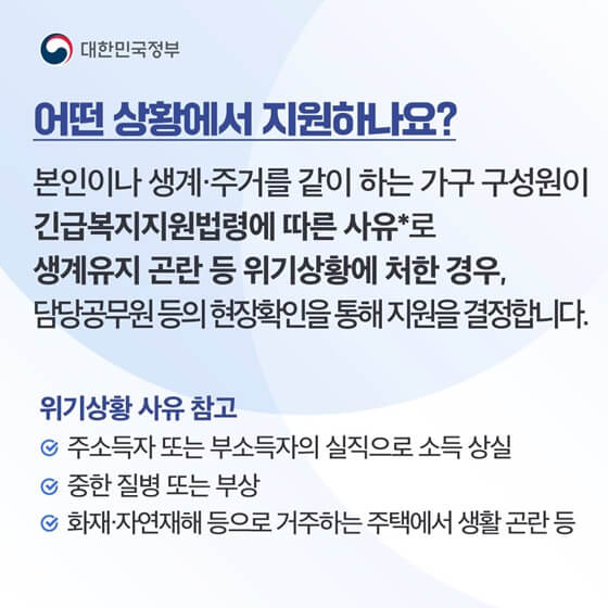 긴급복지 생계지원금을 받을 경우 내가 받을 수 있는 지원내용을 알아보세요!
